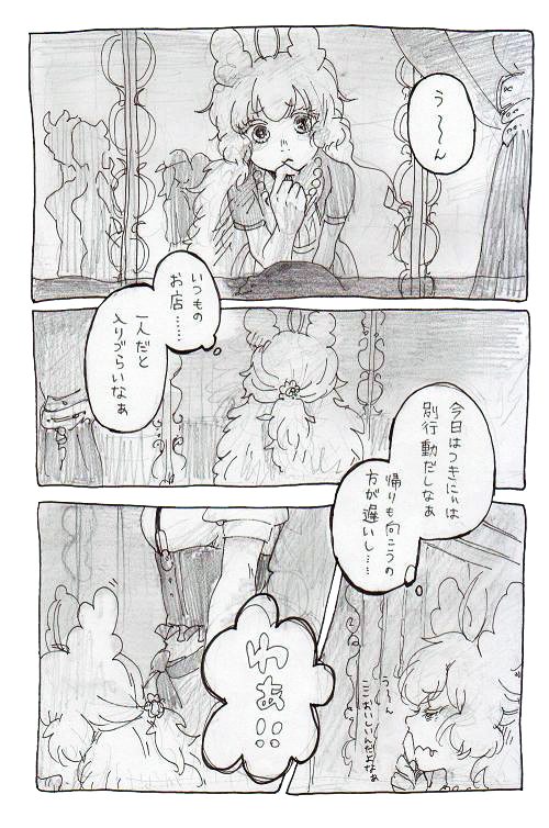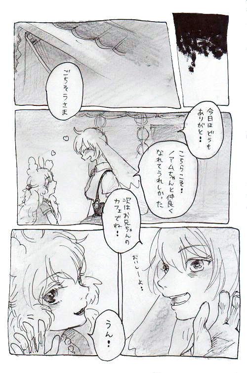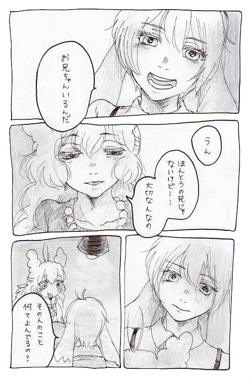 ゆきしろのお気に入りのお店前で好奇心旺盛なアリスのような少女と出会い、兄についてのお茶会をする話